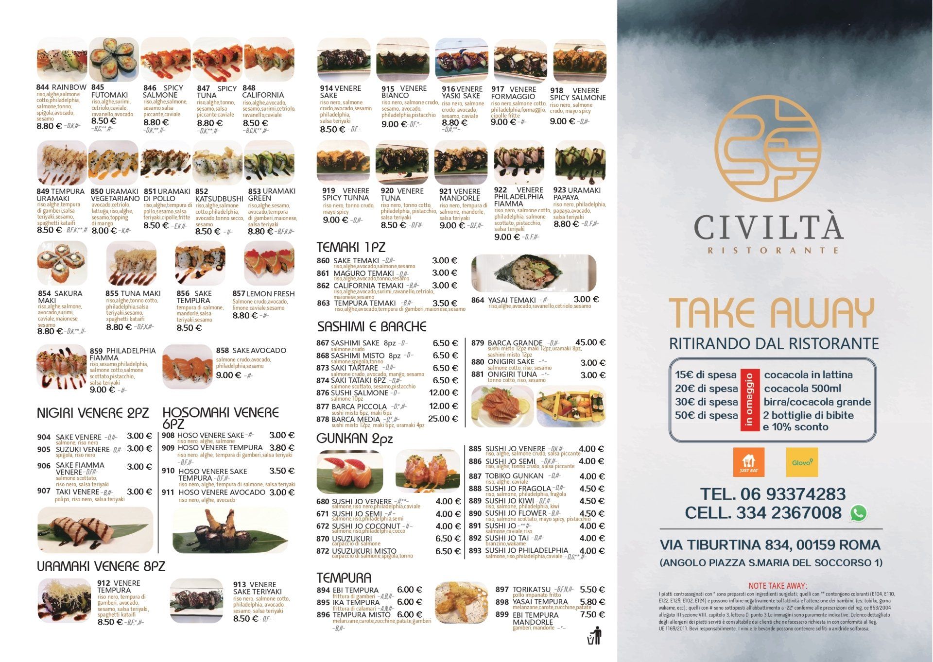 Il Ristorante Civiltà propone sia menù alla carta che la convenientissima formula all you can eat.